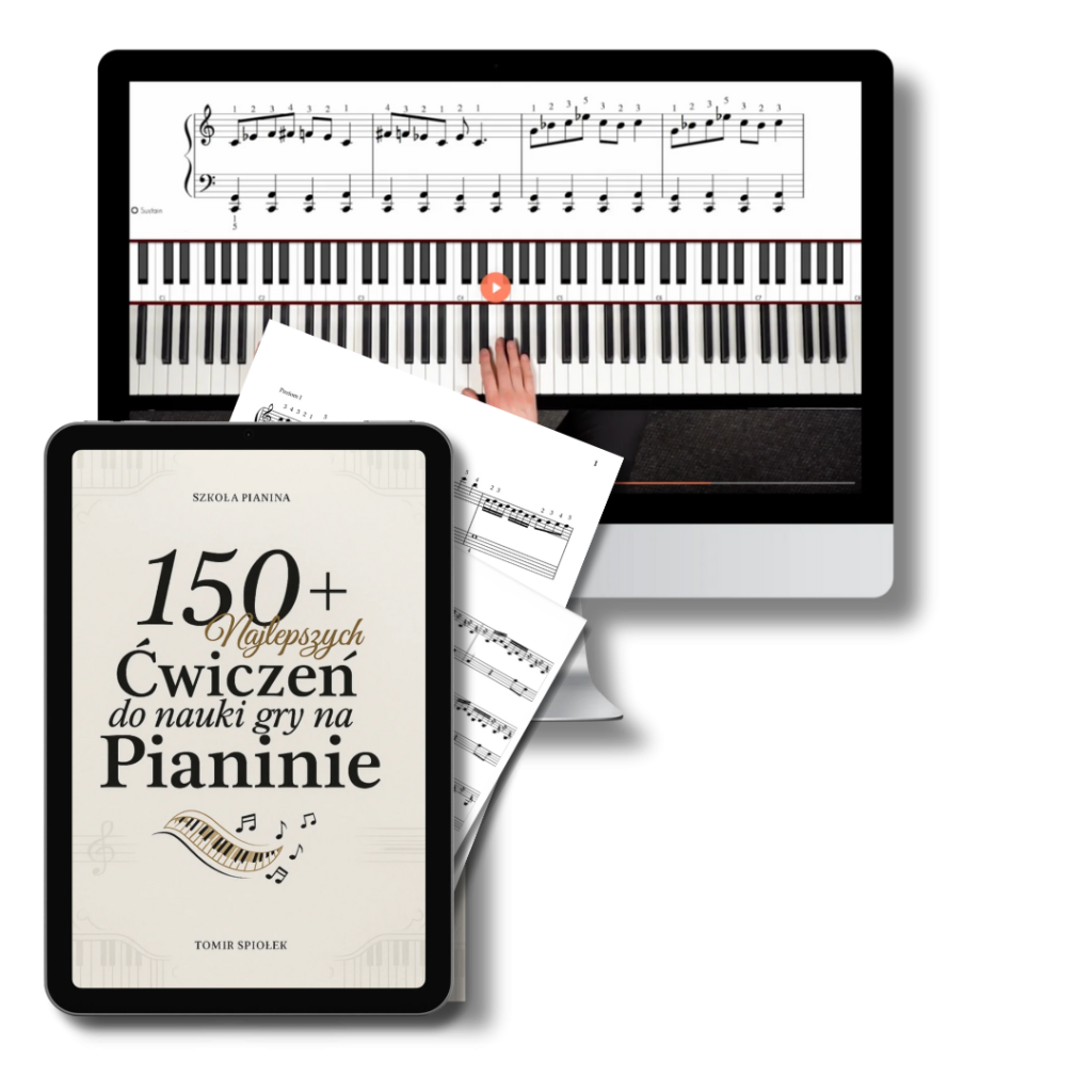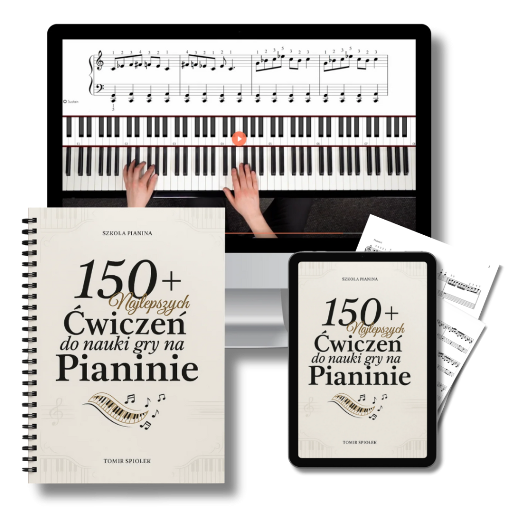 Czyli zbiór ponad 150 najlepszych i najbardziej rozwijających ćwiczeń, do nauki gry na pianinie w formie kursu online i książki z nutami!