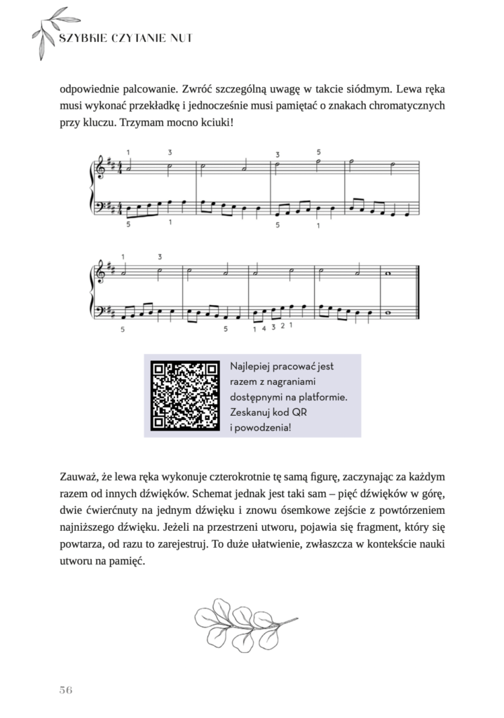 Oprócz treści pisanej, grafik i nut, znajdziesz tam również odnośniki (kody QR) do lekcji video!