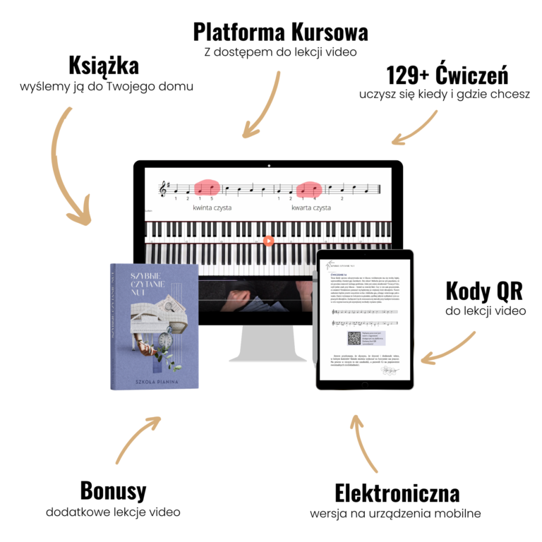 Nowatorski podręcznik w formie książki i kursu online, dla osób, które chcą płynnie grać z nut na pianinie!